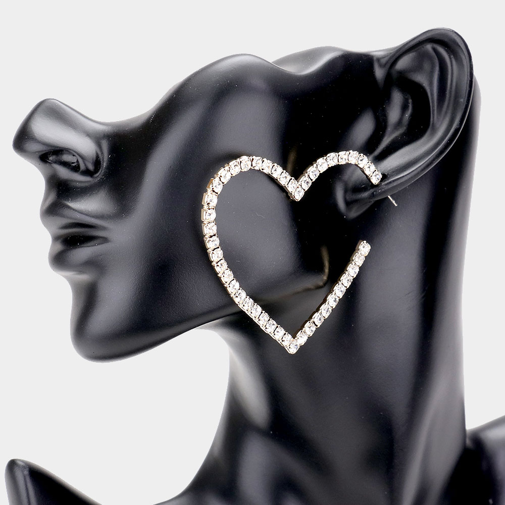 Heart CZ Stone Charm Drop Rhinestone Necklace