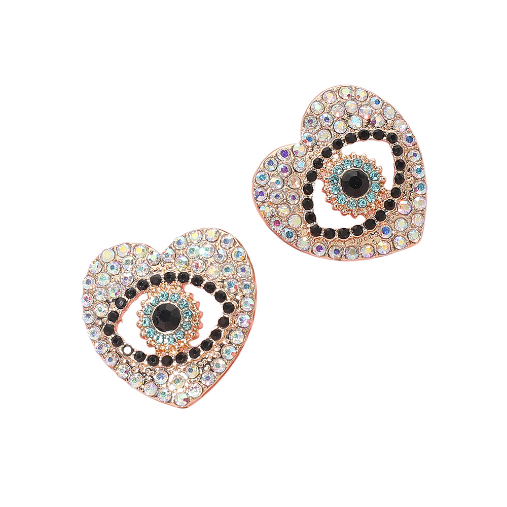 Rhinestone Pave Heart Evil Eye Earrings