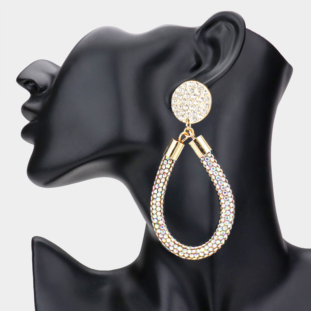 Rhinestone Pave Open Teardrop Dangle Earrings