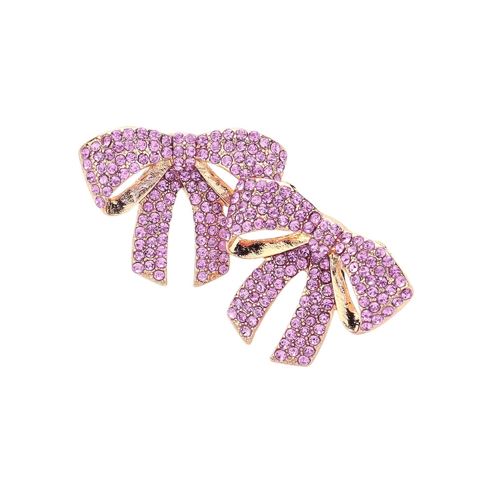Details • Size : 1.3" X 1" • Post Back • Add a playful yet glamorous touch to your look with these sparkling bow earrings adorned with shimmering crystals. Their chic design blends feminine elegance and modern charm, making them the perfect accessory for parties, date nights, and special celebrations. • Lead and Nickel Compliant