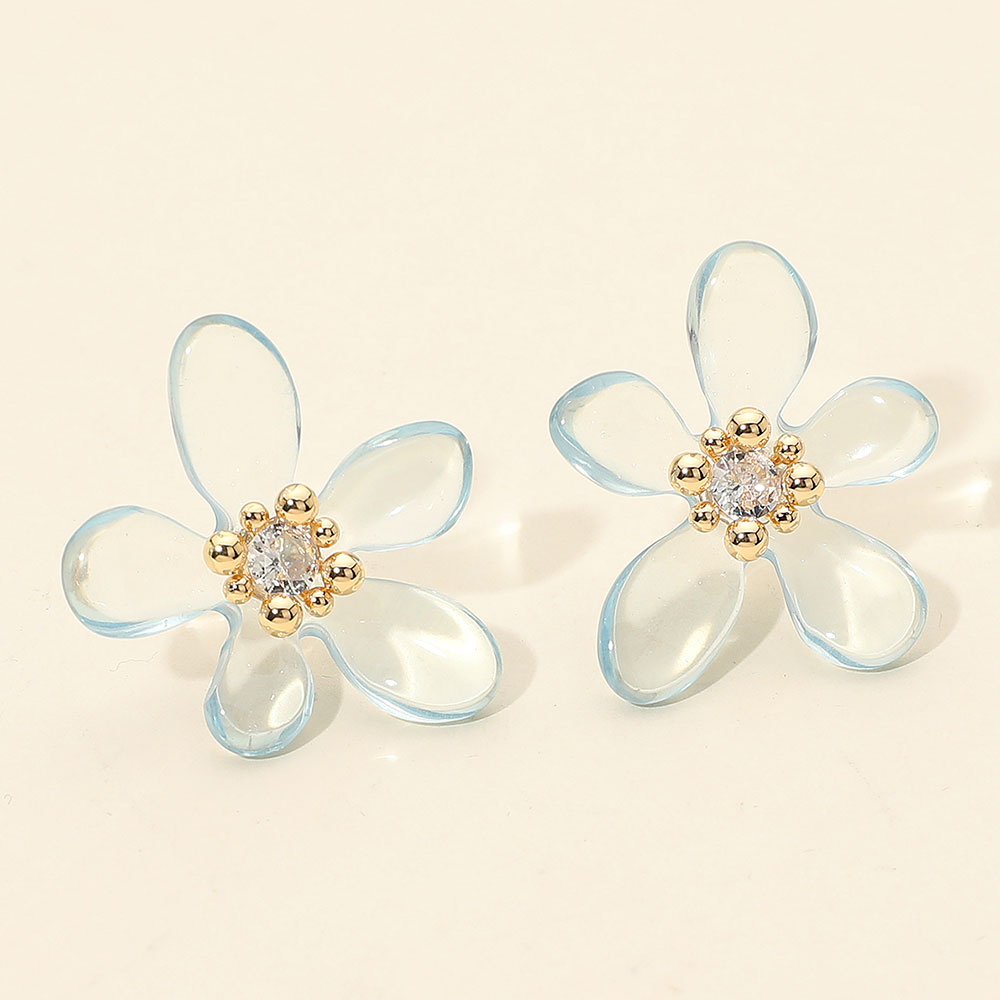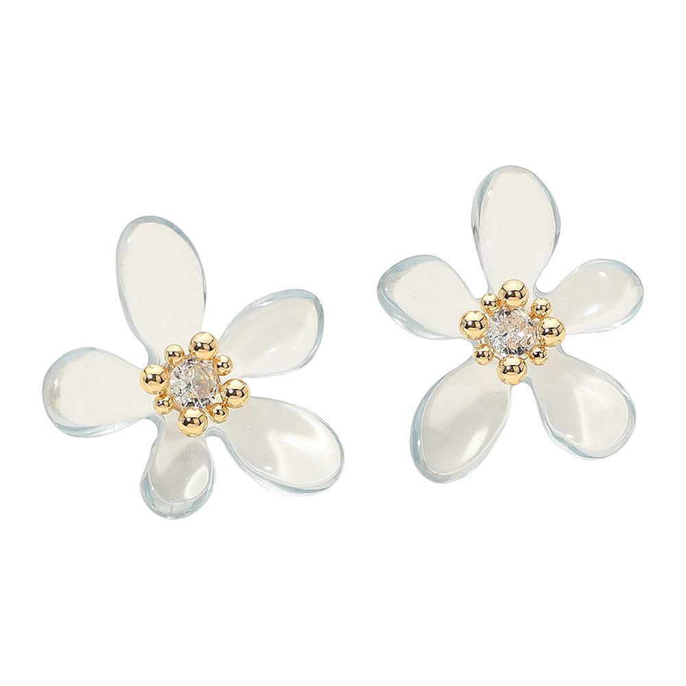Round Center Stone Accent Transparent Resin Petal Flower Earrings Round Center Stone Accent Transparent Resin Petal Flower Earrings