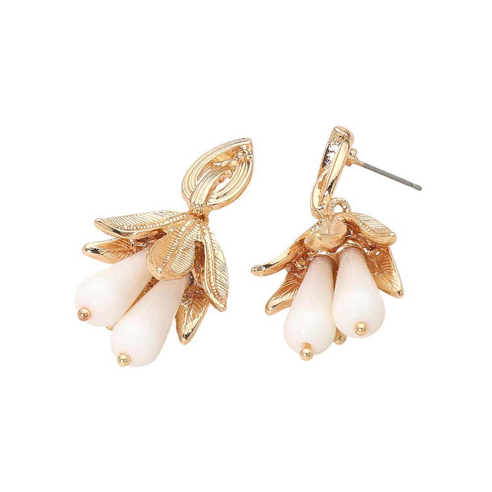 • These leaf drop stud earrings feature a sculpted botanical-inspired design with softly dangling charm elements that add movement and dimension. A refined statement piece that balances elegance and modern style, perfect for everyday outfits or special occasions. Ideal for boutiques seeking unique, trend-forward earrings that appeal to gift shoppers and fashion-focused customers.
