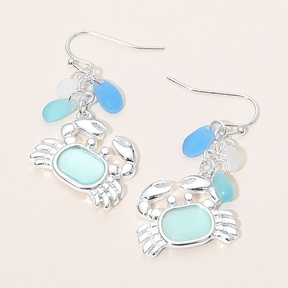 • Crab dangle earrings featuring a playful coastal inspired design with layered charms that add movement and visual interest. A great pick for beach boutiques, resort shops, summer collections, and ocean themed displays, appealing to customers who love fun sea life accessories with a charming novelty style.