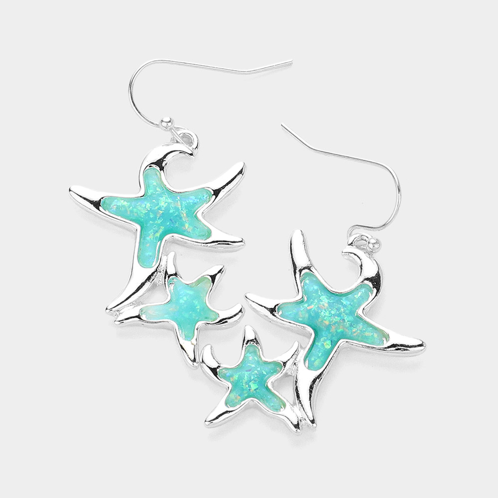 Sea Glass Embossed Starfish Dangle Earrings