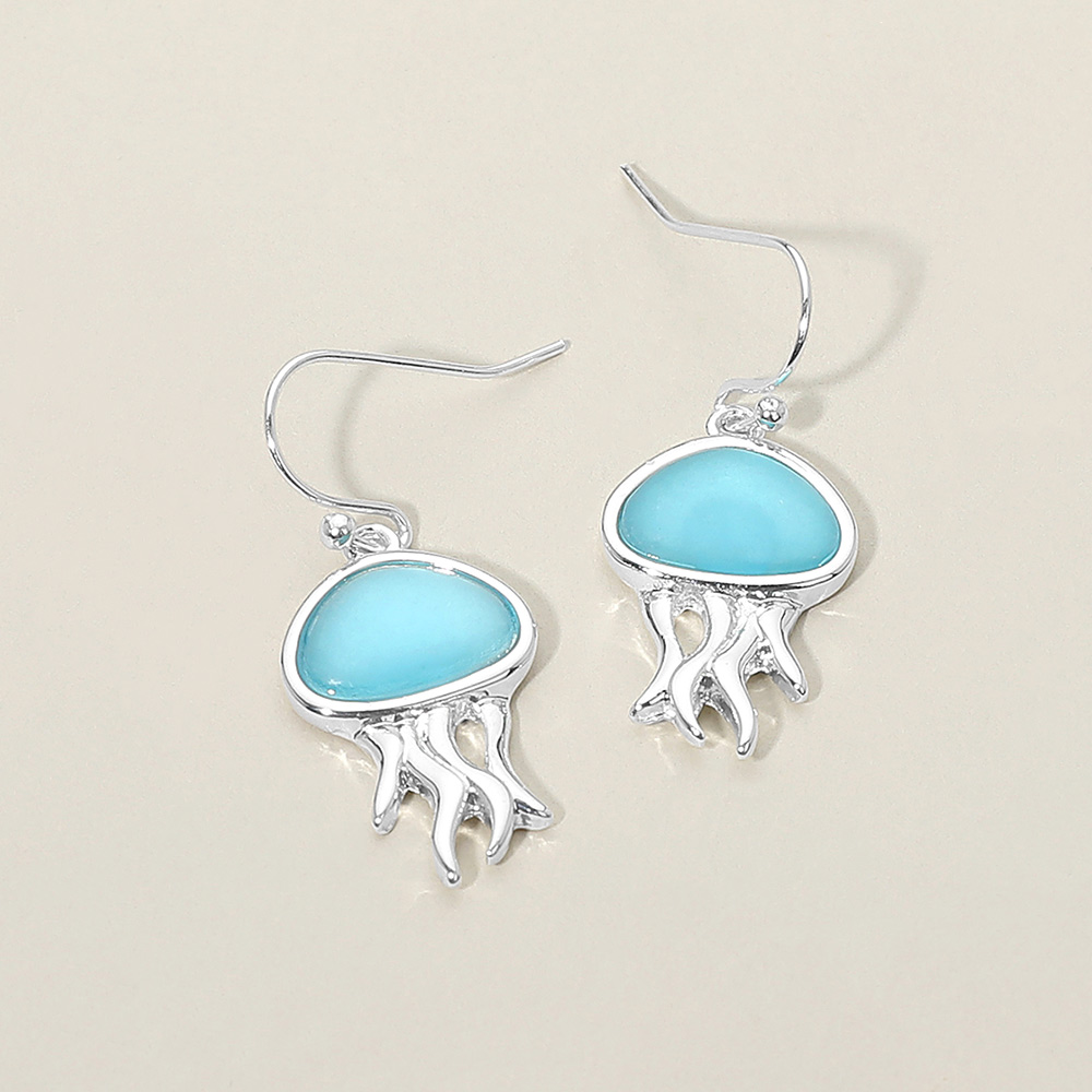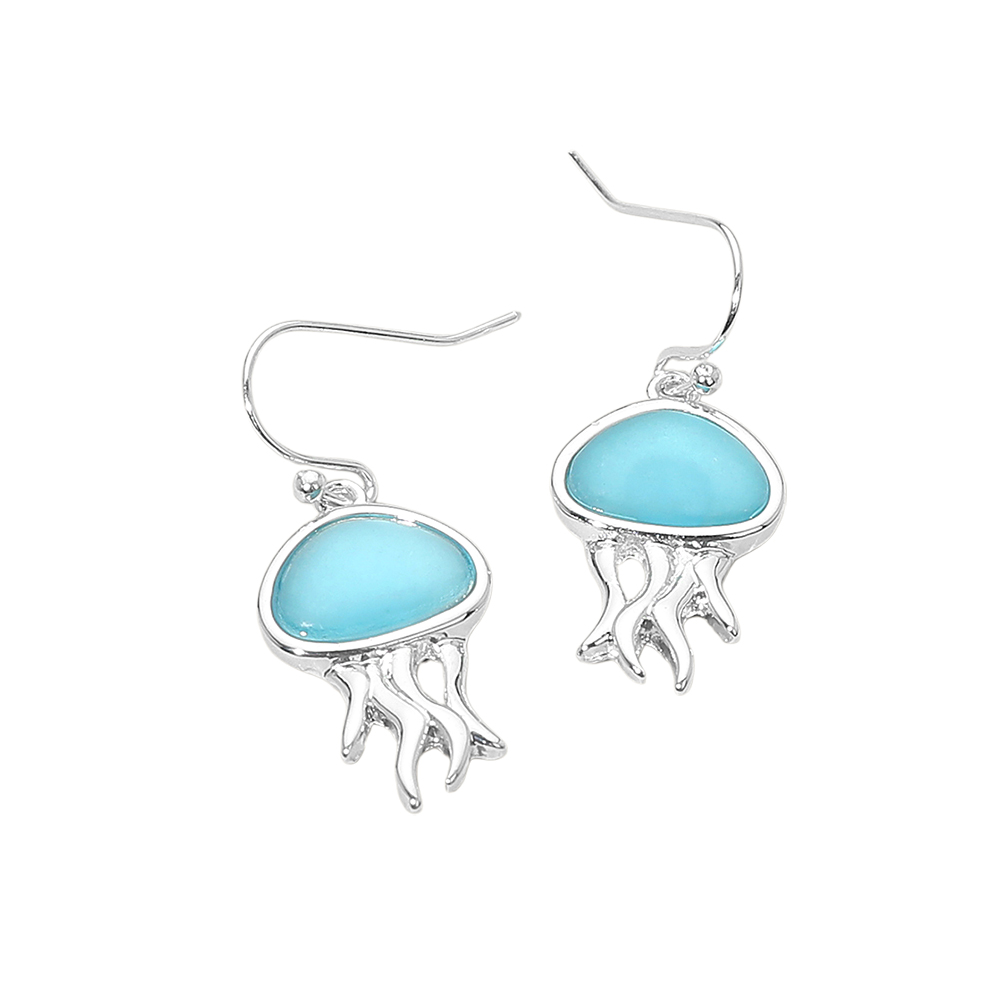 Sea Glass Jellyfish Charm Drop Dangle Earrings