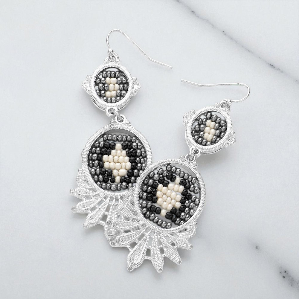 Seed Beaded Double Disc with Fringe Dangle Earrings