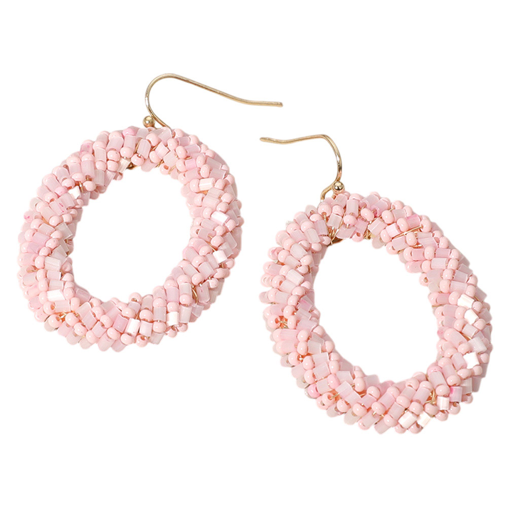 Details • Size : 1.3" X 2.1" • Fish Hook Back • Stylish hoop drop earrings featuring a fully beaded texture that adds dimension and visual interest. Designed to make a statement while remaining lightweight and comfortable, these earrings are perfect for everyday wear, vacations, and boutique collections seeking trendy yet versatile accessory styles. • Lead and Nickel Compliant