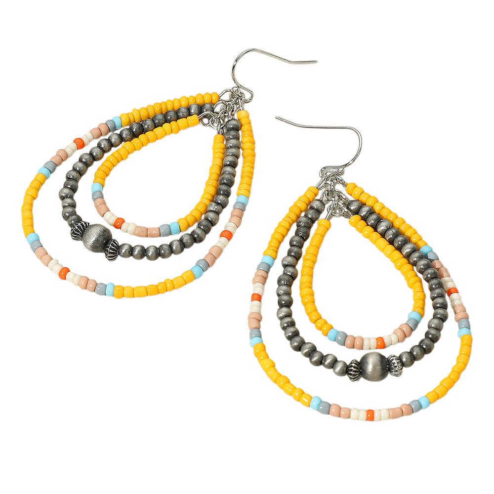 Details • Size : 1.6" X 2.75" • Fish Hook Back • Make a bold style statement with these layered teardrop earrings featuring multi-strand beaded detailing and a unique artistic design. Lightweight and versatile, they add a playful yet elegant touch, perfect for casual looks or dressing up for special occasions. • Lead and Nickel Compliant