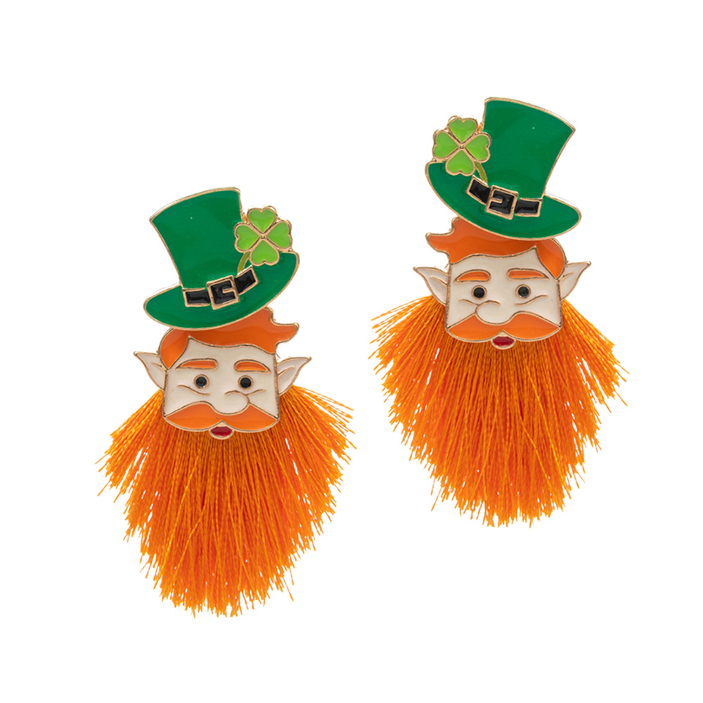 Details • Size : 1.3" X 2.5" • Post Back • Festive drop earrings with a leprechaun character and playful tassel detail for eye-catching movement and seasonal style. Designed to elevate holiday outfits, themed events, or casual looks while remaining lightweight and comfortable for easy, all-day wear and gift giving. • Lead and Nickel Compliant