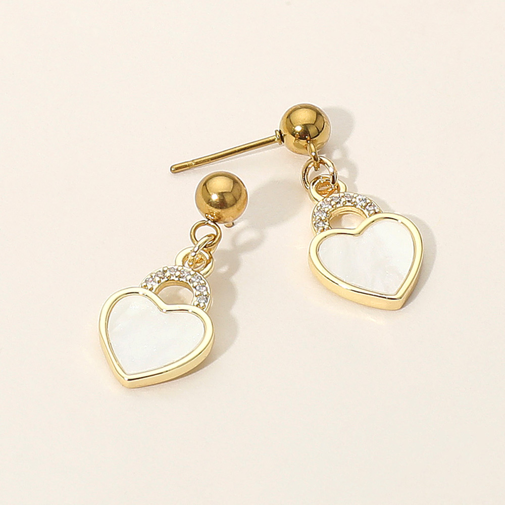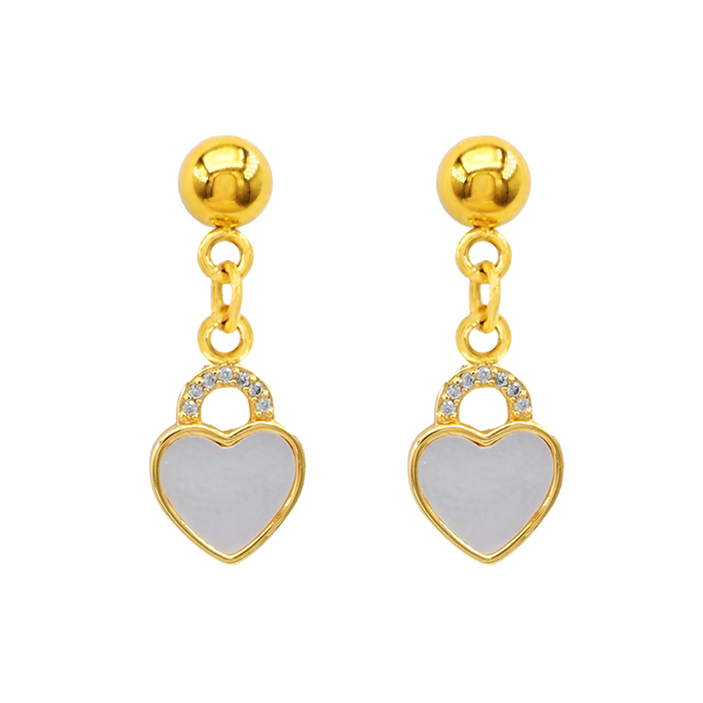 Stainless Steel CZ Stone Accent Mother of Pearl Heart Charm Dangle Earrings