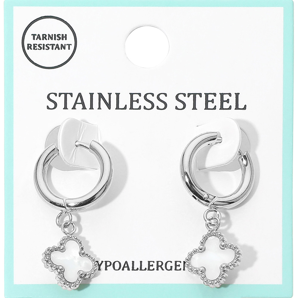 Stainless Steel Mother of Pearl Quatrefoil Charm Drop Dangle Huggie Hoop Earrings Stainless Steel Mother of Pearl Quatrefoil Charm Drop Dangle Huggie Hoop Earrings Stainless Steel Mother of Pearl Quatrefoil Charm Drop Dangle Huggie Hoop Earrings
