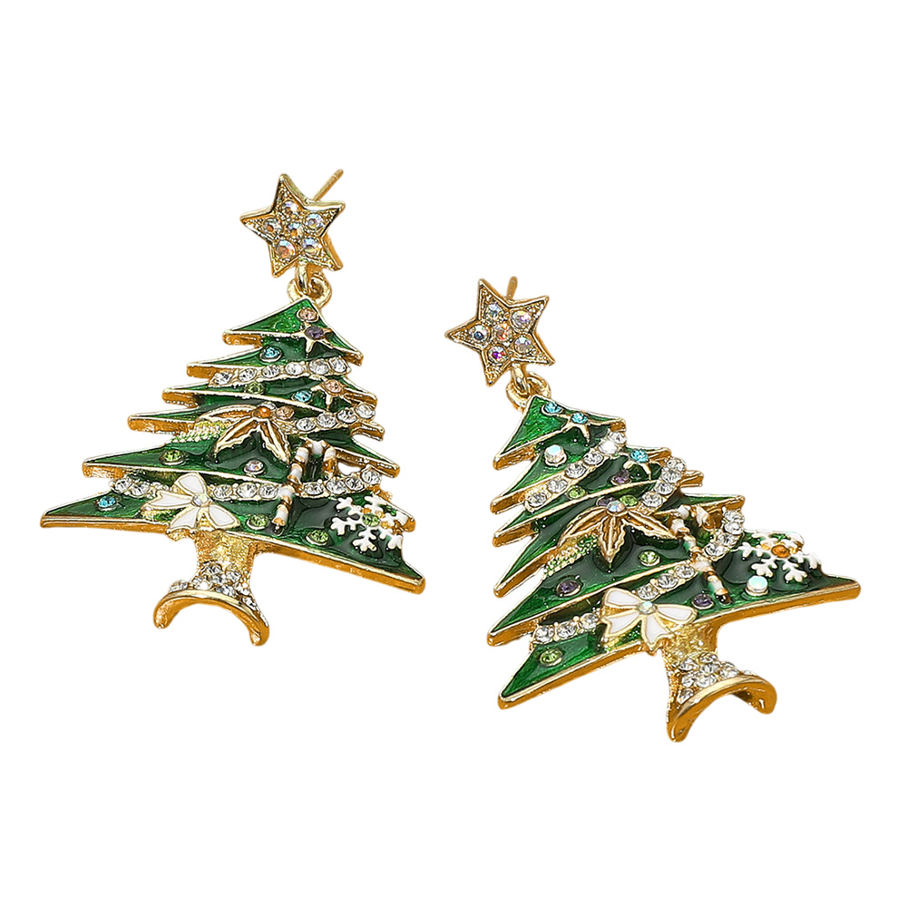Details • Size : 1.4" X 2.1" • Post Back • Shine bright this holiday season with these sparkling Christmas tree earrings featuring dazzling crystal accents and star toppers. A festive statement accessory perfect for parties, celebrations, or gifting to someone who loves cheerful and elegant holiday style. • Lead and Nickel Compliant