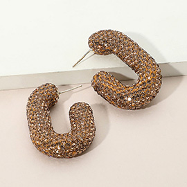 Sterling Silver Post Rhinestone Studded Chunky Oval Hoop Earrings