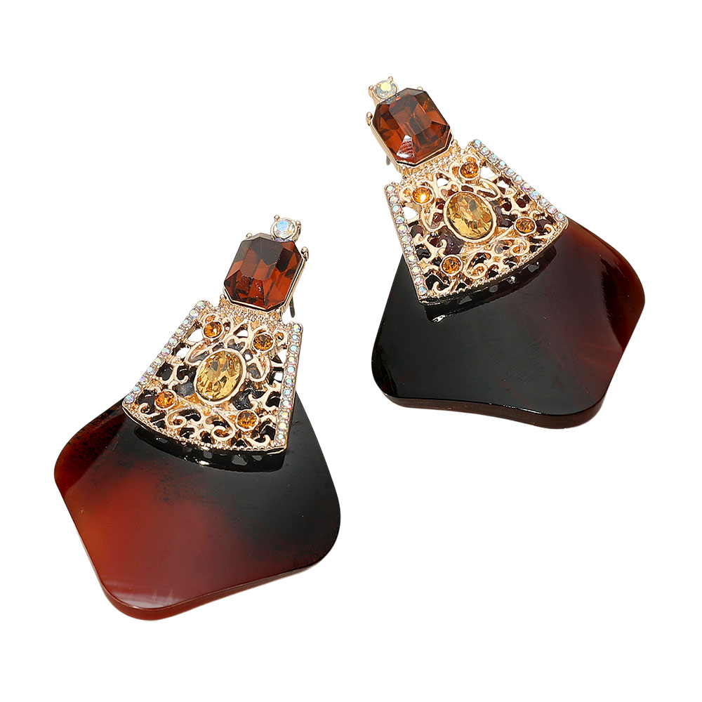 Details • Size : 1.75" X 2.5" • Post Back • Luxurious vintage-inspired statement earrings featuring ornate filigree detailing and radiant gem accents. The bold geometric drop shape adds sophistication and drama, making these earrings a stunning choice for evening wear, parties, or elegant special occasions. • Lead and Nickel Compliant