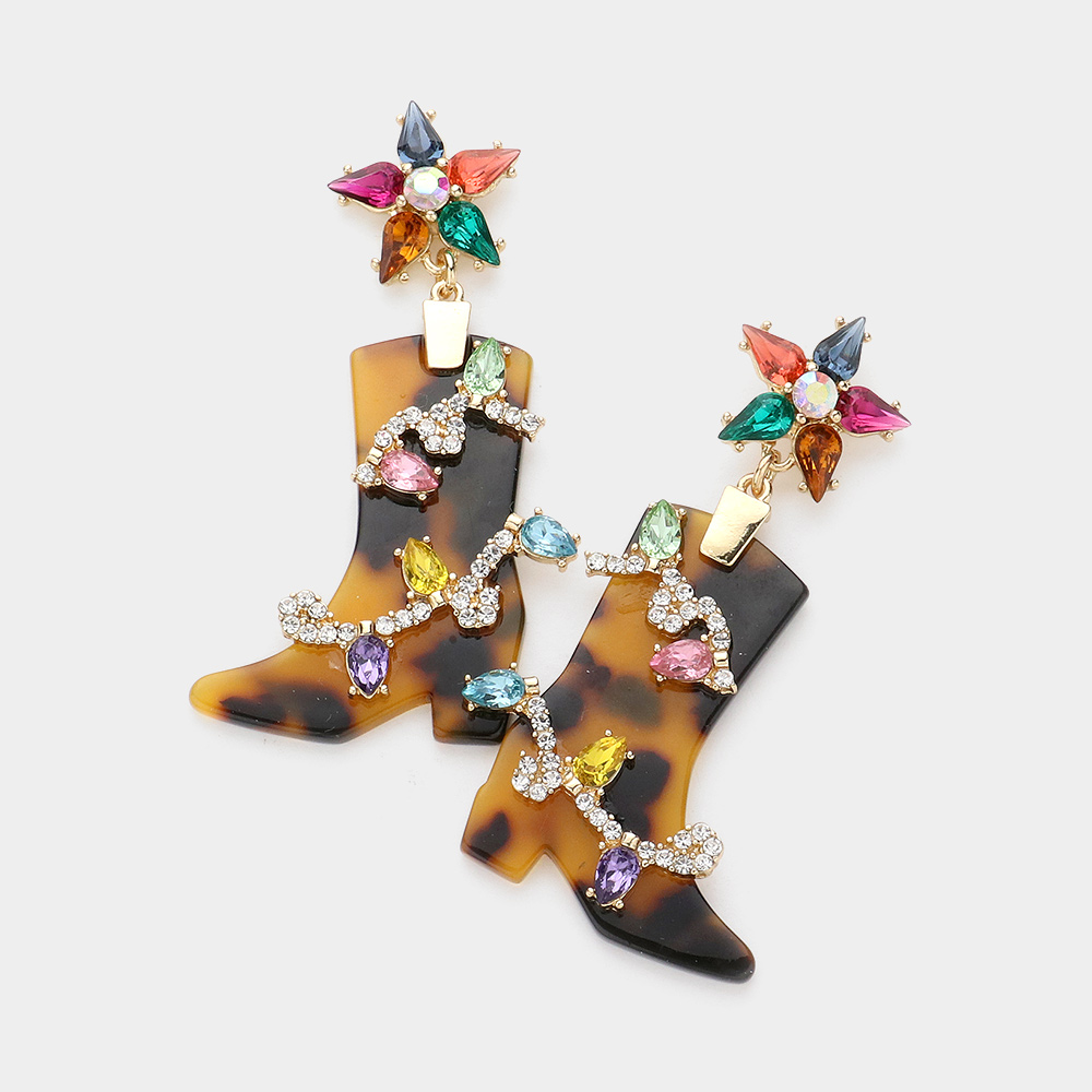 Stone Embellished Resin Cowboy Boot Dangle Earrings