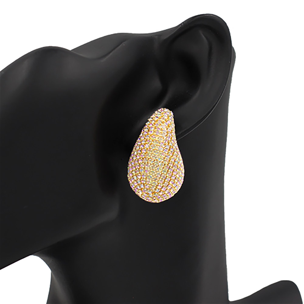 Ornate Top Faceted Teardrop Stone Dangle Clip On Evening Earrings