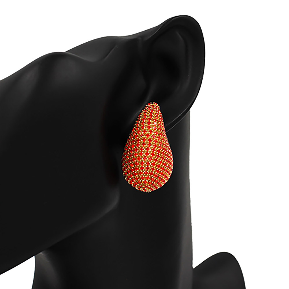 Stone Paved Curved Teardrop Earrings