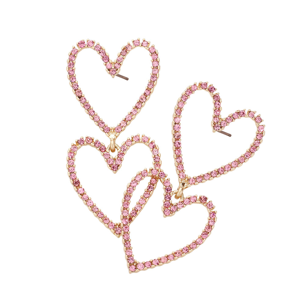 Details • Size : 1" X 2.25" • Post Back • Shine bright with these dazzling double heart drop earrings featuring sparkling rhinestone accents. Their elegant intertwined heart design adds romantic flair and playful sparkle, making them the perfect statement accessory for parties, dates, or special celebrations. • Lead and Nickel Compliant