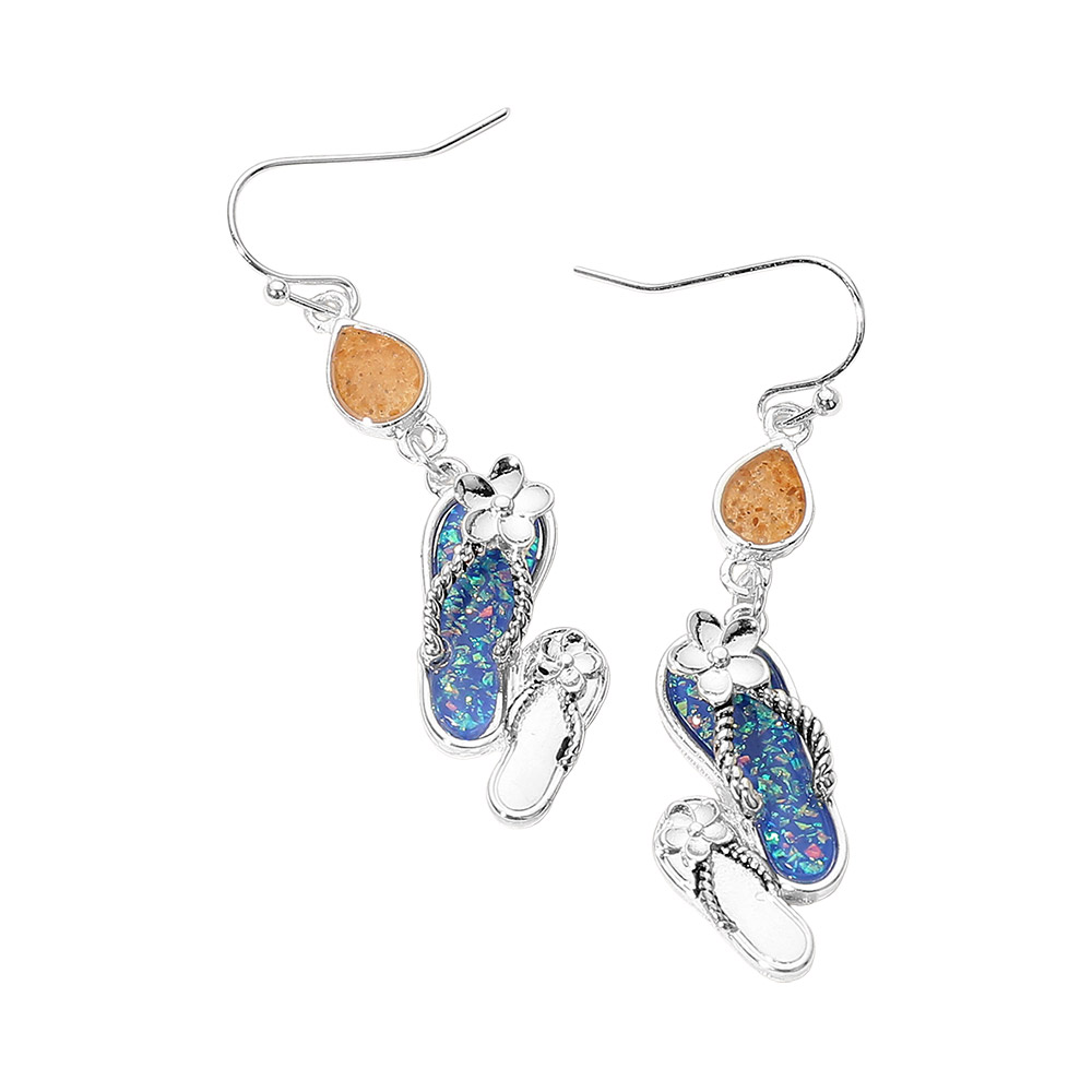 • Beach inspired flip flop charm drop earrings featuring playful movement and a relaxed coastal theme. A fun accessory for summer outfits, vacation looks, resort wear, and seaside gift assortments, adding personality and seasonal appeal while remaining lightweight and easy to style.