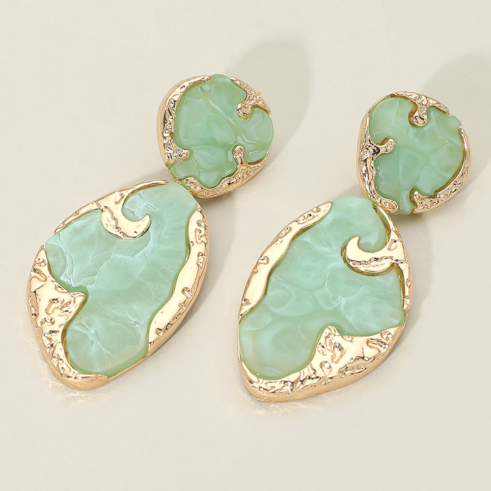 • Bold and sophisticated, these statement drop earrings feature an artistic marbled pattern encased in a textured frame. Perfect for adding a touch of elegance to any outfit, they balance modern style with timeless appeal for both day and evening wear.