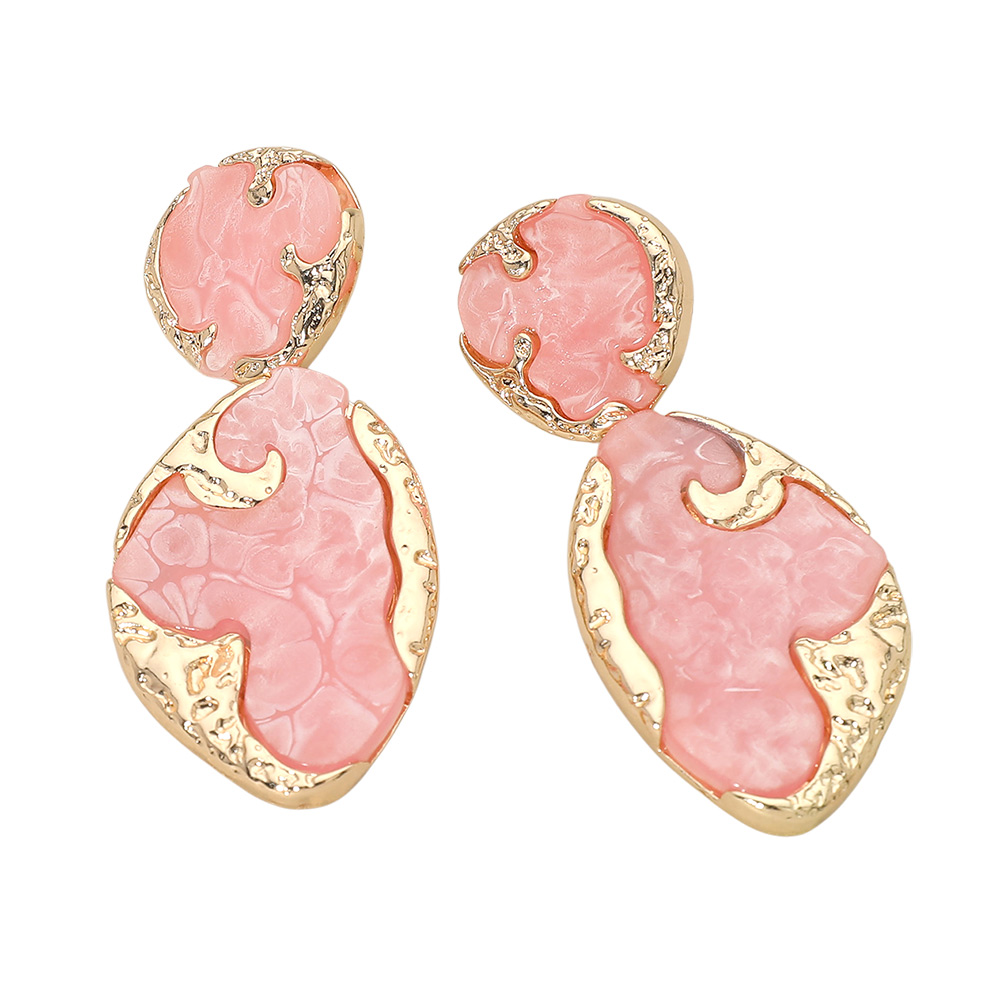 • Bold and sophisticated, these statement drop earrings feature an artistic marbled pattern encased in a textured frame. Perfect for adding a touch of elegance to any outfit, they balance modern style with timeless appeal for both day and evening wear.