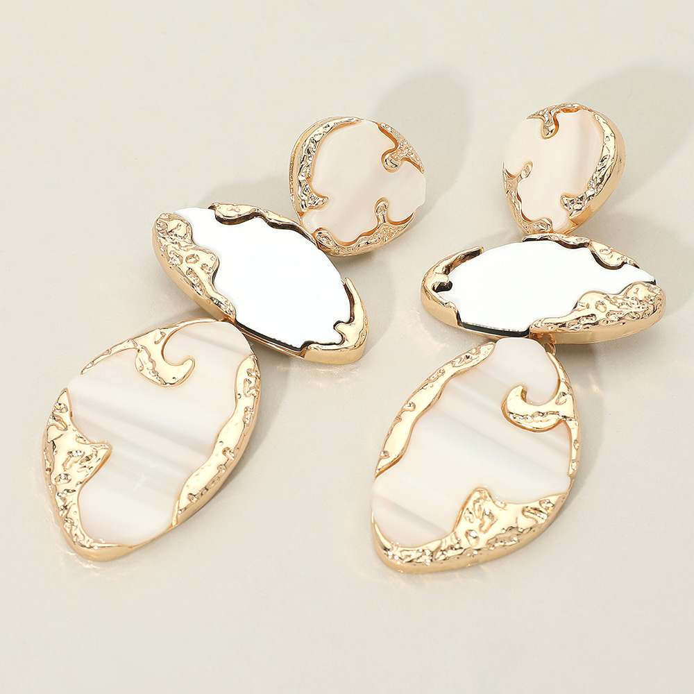 Textured Metal Frame Abstract Celluloid Acetate Plate Link Drop Statement Earrings