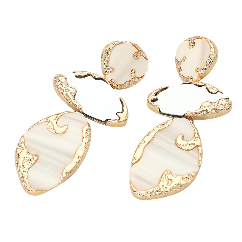 • Make a bold style statement with these double drop earrings, featuring an abstract marbled look framed in a textured finish. Designed for elegance and versatility, they are perfect for enhancing both casual and formal ensembles.