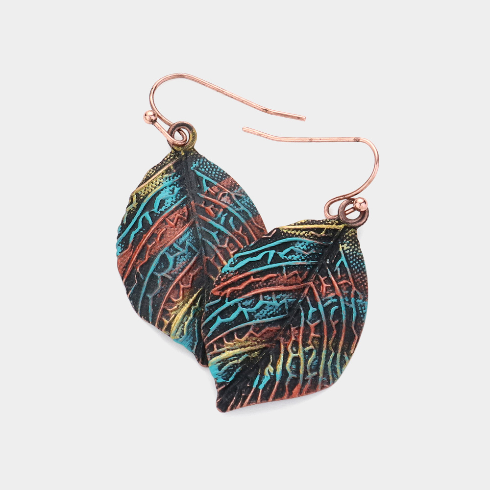 Oval Faux Leather Metal Arrow Dangle Earrings