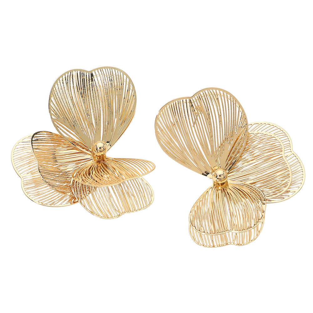 Details • Size : 2.1" X 2.5" • Post Back • Add a touch of sculptural elegance with these Modern Triple Petal Earrings. Featuring a layered petal design with a radiant finish, these earrings offer a bold yet refined statement. Perfect for formal or evening wear, they blend modern artistry with timeless sophistication. • Lead and Nickel Compliant