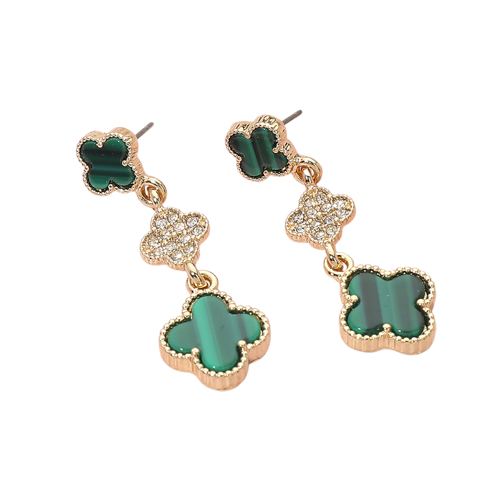• Elegant drop earrings designed with linked quatrefoil motifs for a graceful, eye-catching silhouette. This refined style adds movement and shine, making it ideal for everyday wear or special occasions. A versatile accessory that pairs beautifully with modern outfits, classic looks, and curated jewelry collections for boutiques and gifting displays.
