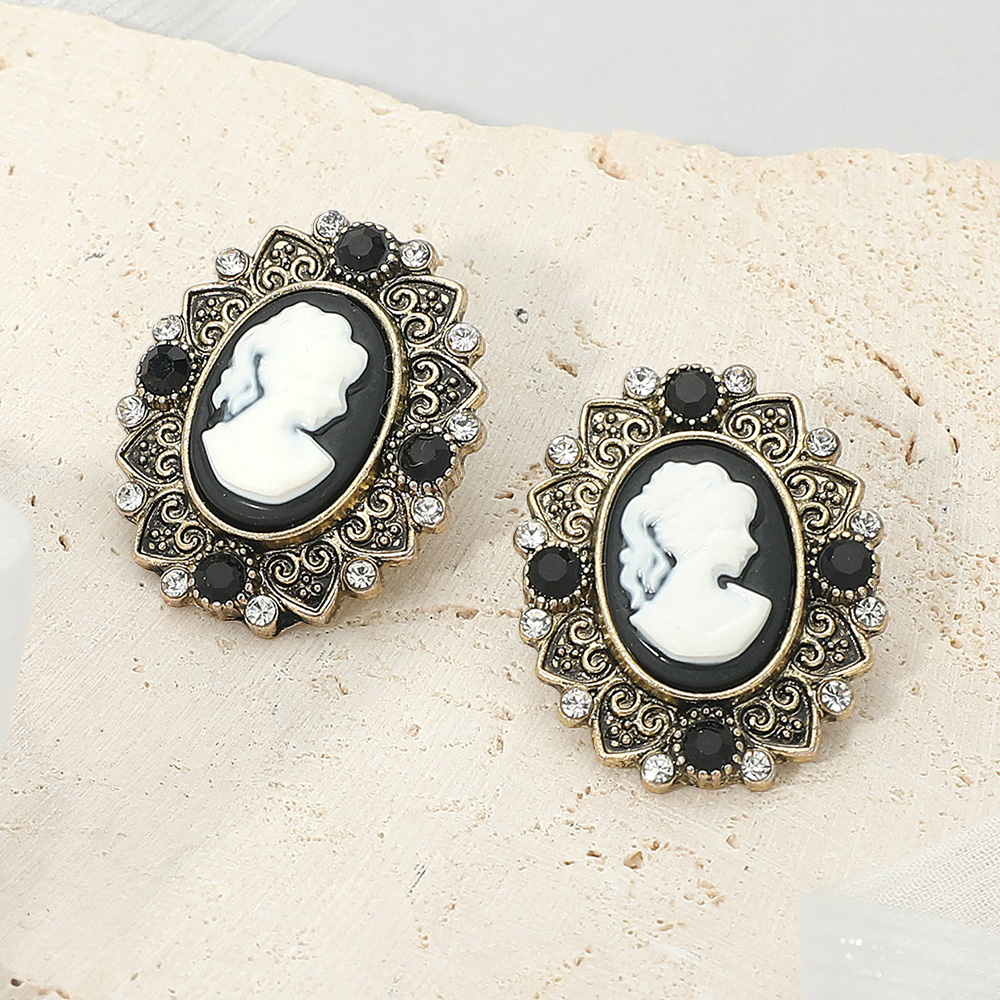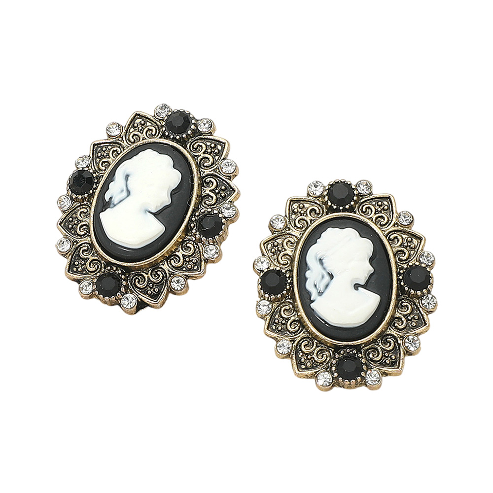Details • Size : 1" X 1.25" • Post Back • Add a touch of timeless elegance with these vintage cameo oval stud earrings featuring an ornate frame and intricate detailing. Perfect for classic or formal looks, these earrings capture antique-inspired charm that complements both modern and traditional styles beautifully. • Lead and Nickel Compliant