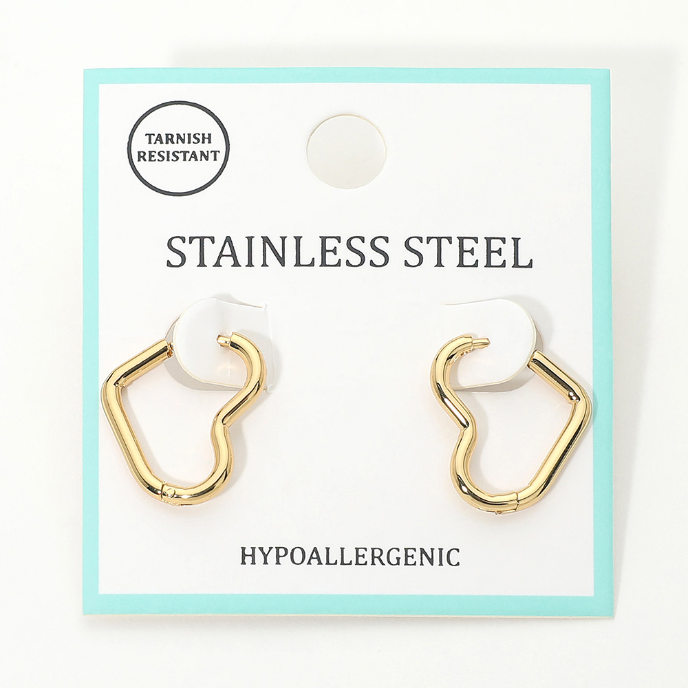 Details • Size : 0.7" X 0.75" • Huggie Back • Tarnish Resistant • Stylish heart outline huggie earrings with a smooth, modern silhouette designed for everyday comfort and effortless layering. A versatile jewelry staple that transitions easily from casual looks to elevated outfits, offering a clean, romantic statement that appeals to trend-focused and gift-ready collections. • Hypoallergenic • Stainless Steel