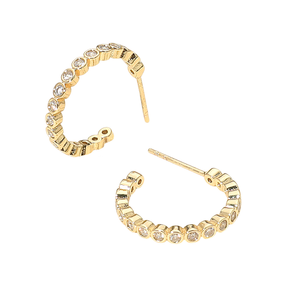 Details • Size : 0.8" X 0.75" X 0.1" • Post Back • Elegant hoop earrings featuring bezel-set crystals for a continuous sparkle effect. Their sleek and versatile design makes them perfect for day-to-night wear, adding sophistication to both casual and formal outfits. A timeless jewelry staple that enhances every style with a refined touch of brilliance. • Brass • CZ Cubic Zirconia • Gold Dipped • Hypoallergenic • Lead and Nickel Compliant • Made In Korea