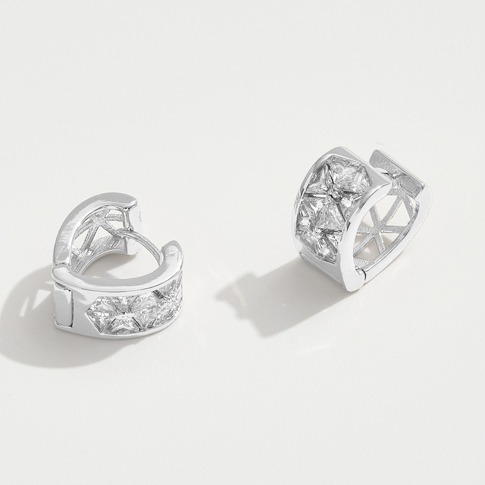 • Elevate your everyday style with these huggie hoop earrings, featuring bold square-cut CZ inlays that deliver a modern geometric sparkle. Designed for comfort and sophistication, they are the perfect choice for stacking or solo wear, adding instant shine to any look.