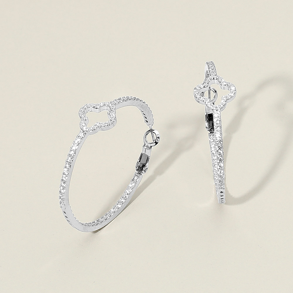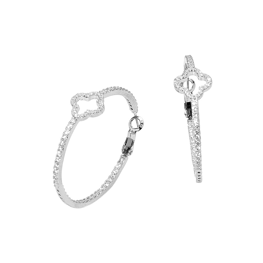• These elegant hoop earrings feature a delicate quatrefoil-shaped accent paired with a shimmering line of cz stones for added brilliance. Their refined silhouette offers a polished touch that enhances everyday outfits or special-occasion looks with effortless sophistication and charm.
