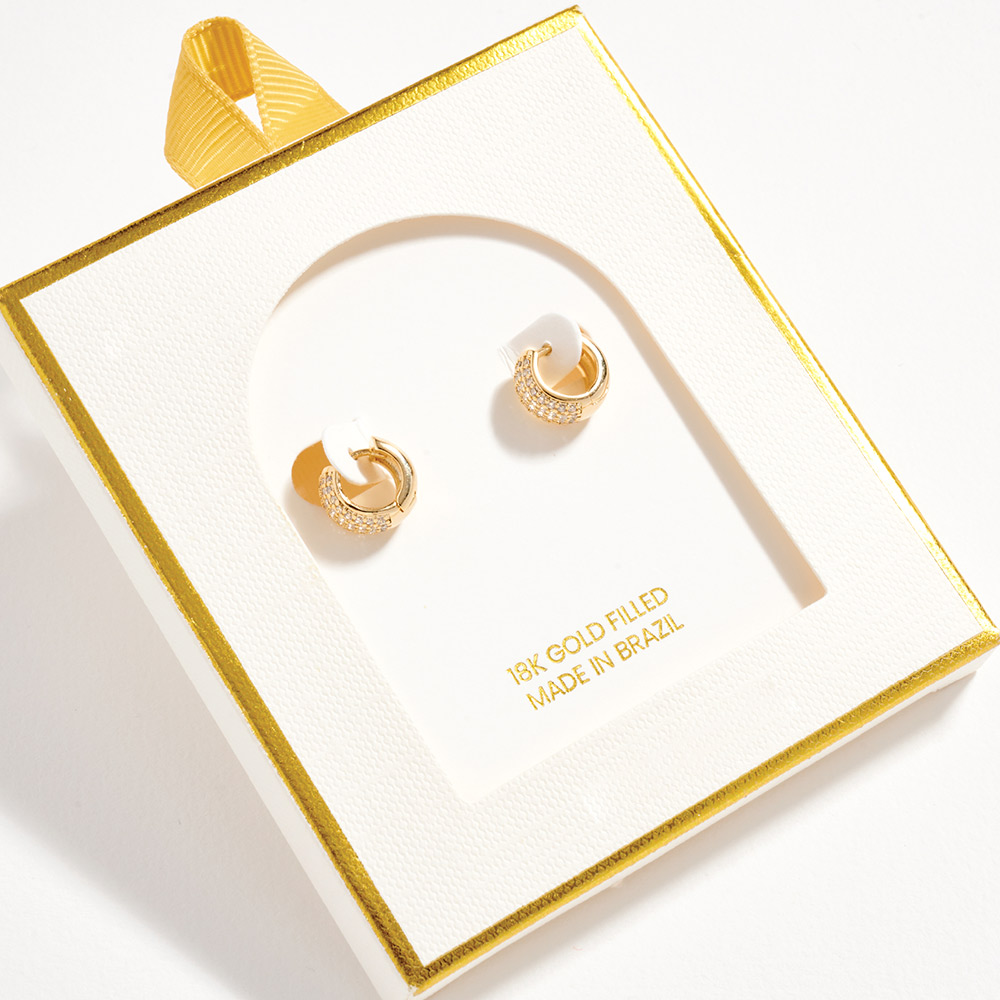 18K Gold Filled CZ Pave Mini Huggie Hoop Earrings