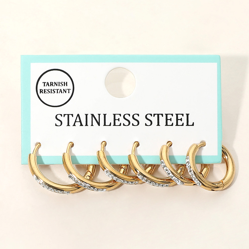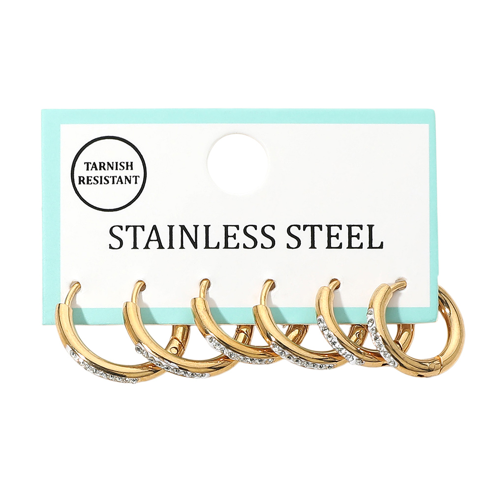 3Pairs - Stainless Steel Stone Pave Huggie Hoop Earring Set