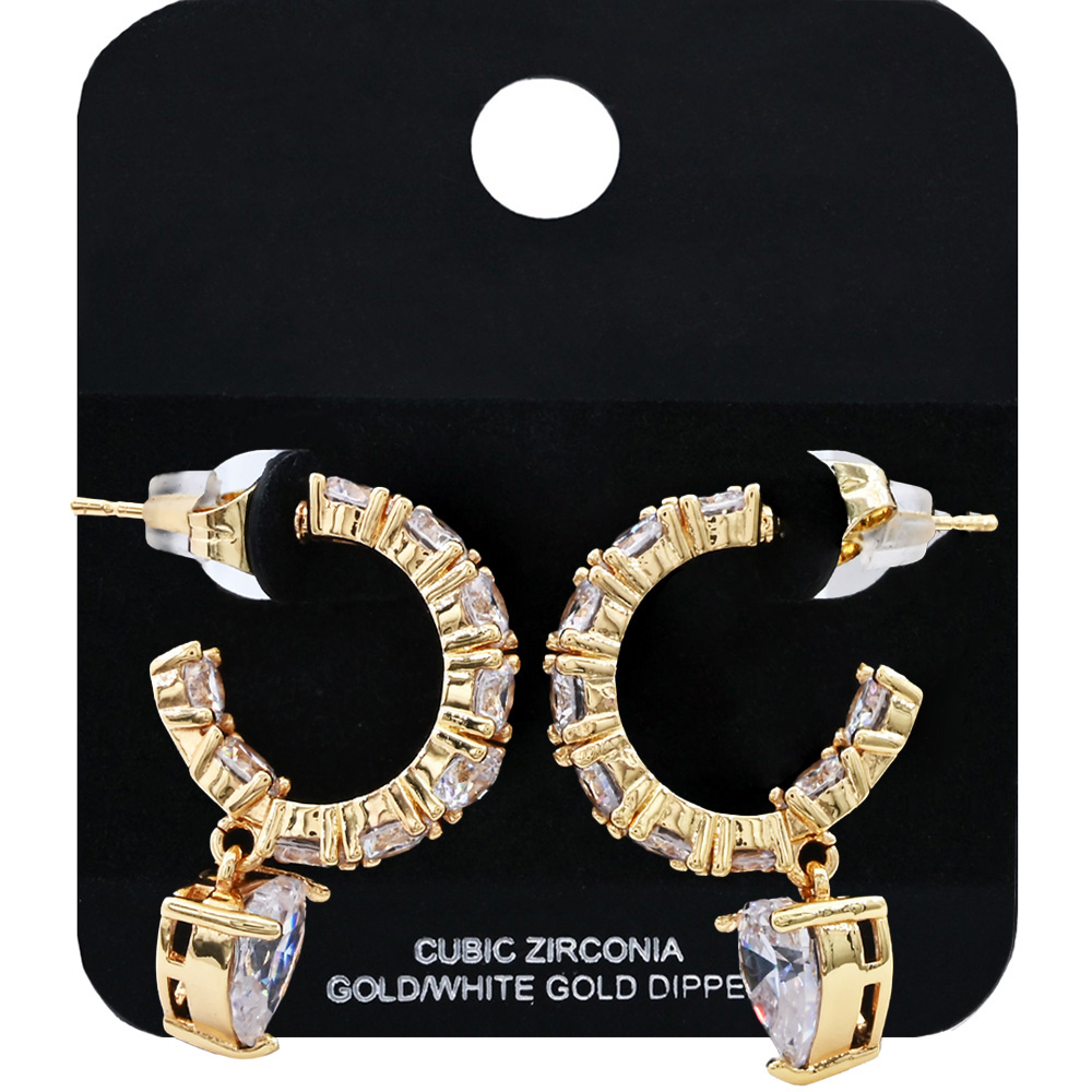 Details • Size : 0.8" X 1" • Post Back • Add timeless elegance to your style with these hoop earrings featuring sparkling cubic zirconia and a unique drop accent. Designed to capture light beautifully, they are perfect for both special occasions and everyday glamour. A must-have statement piece for your jewelry collection. • CZ Cubic Zirconia • Gold Dipped • Lead and Nickel Compliant