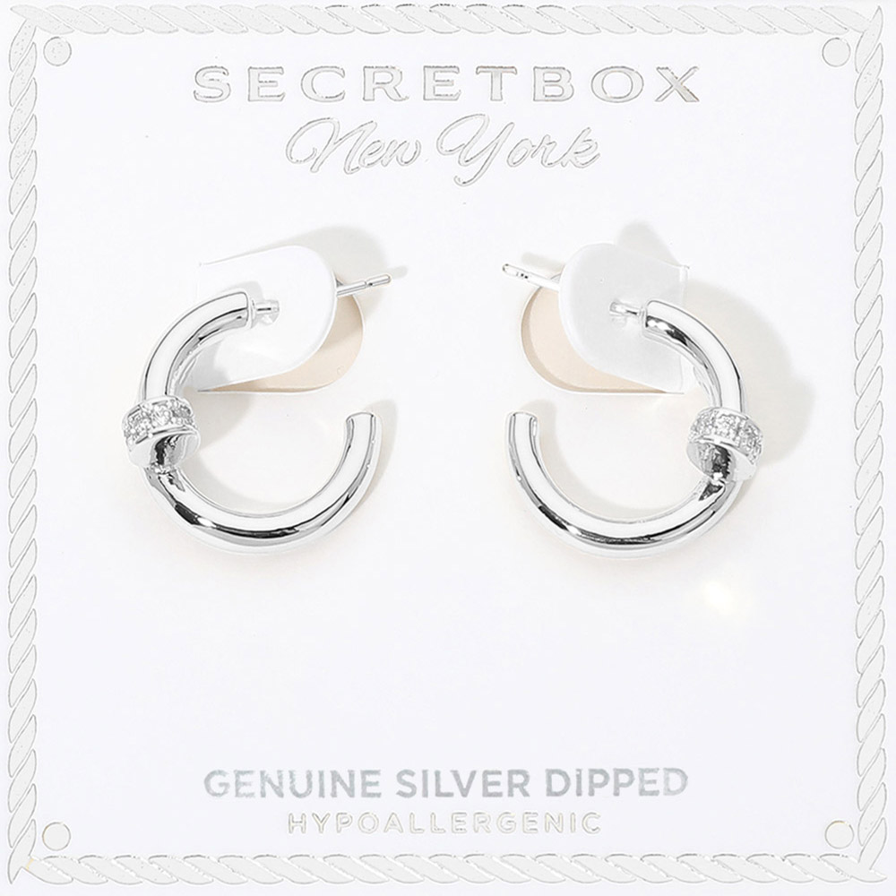 SECRET BOX_Genuine Silver Dipped Stone Pave Mini Nail Hoop Earrings SECRET BOX_Genuine Silver Dipped Stone Pave Mini Nail Hoop Earrings SECRET BOX_Genuine Silver Dipped Stone Pave Mini Nail Hoop Earrings