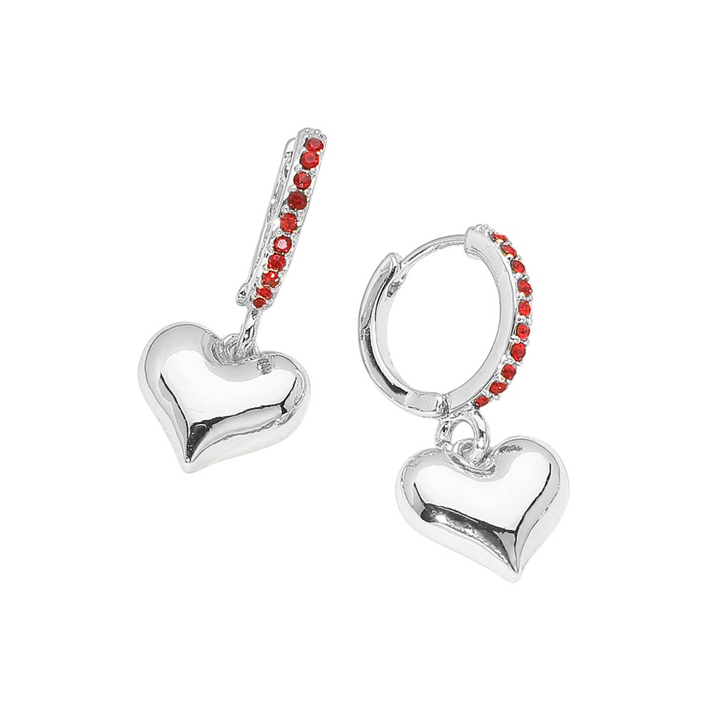 Details • Size : .075" X 1.4" • Huggie Back • These heart charm huggie hoop earrings feature a sleek hoop design accented with subtle sparkle and a dangling heart charm for added movement and shine. Designed for effortless everyday wear, they pair easily with casual looks or layered styles, making them a versatile choice for gifting, boutiques, and curated jewelry collections. • Sterling Silver Dipped • Lead and Nickel Compliant
