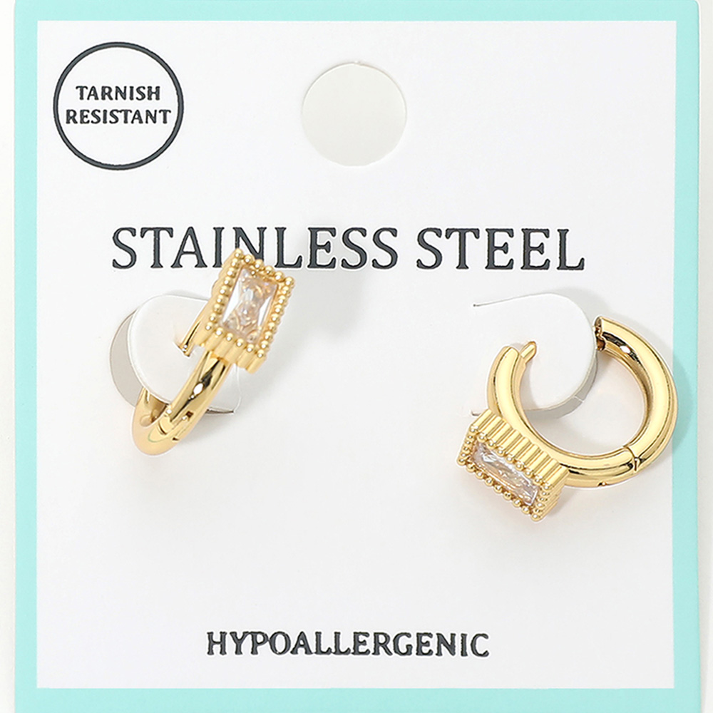 Stainless Steel Baguette Stone Accent Mini Huggie Hoop Earrings Stainless Steel Baguette Stone Accent Mini Huggie Hoop Earrings Stainless Steel Baguette Stone Accent Mini Huggie Hoop Earrings