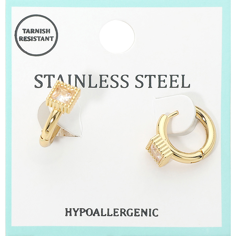 Stainless Steel Square Stone Accent Mini Huggie Hoop Earrings