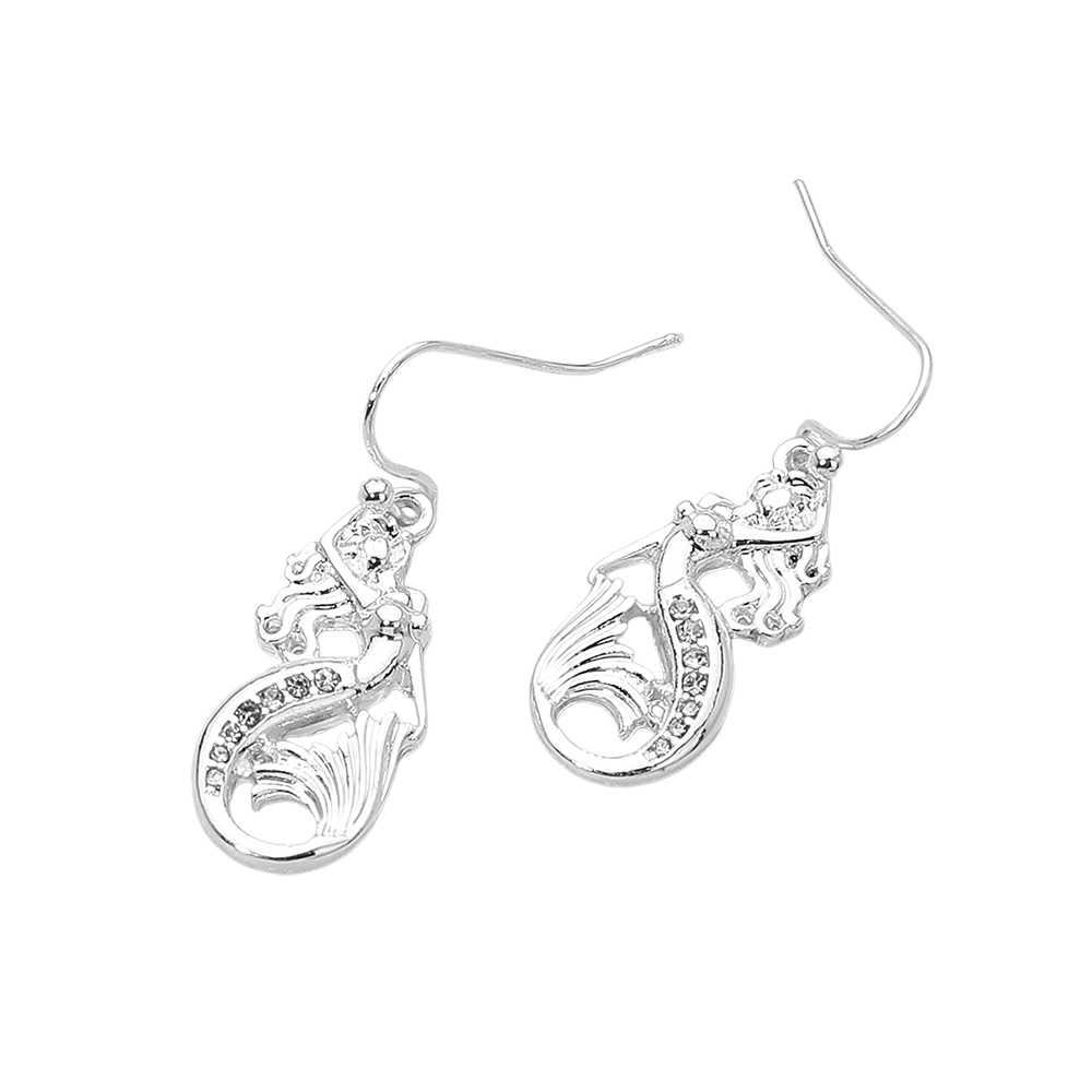 • Whimsical mermaid dangle earrings featuring flowing lines and graceful movement that capture an ocean inspired fantasy look. A charming accessory for beach boutiques, resort shops, summer styling, gift stores, and coastal themed jewelry collections seeking playful yet elegant appeal.