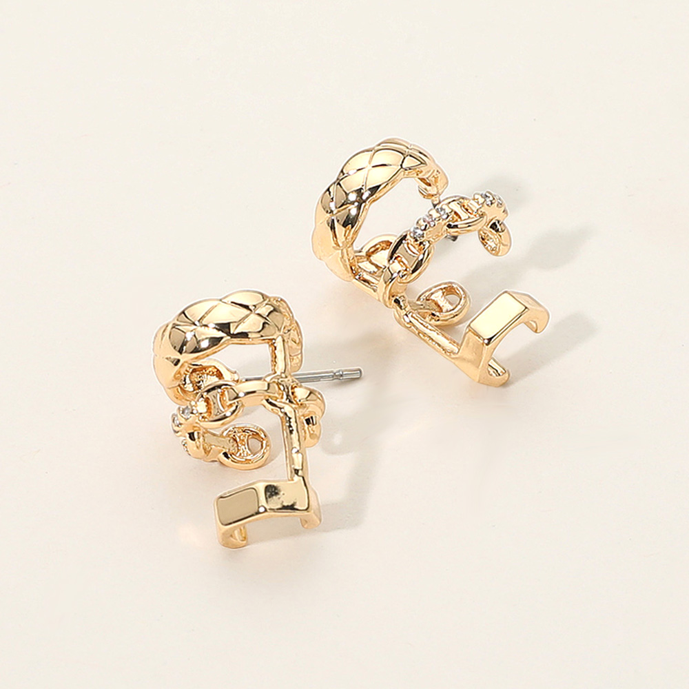 Details • Size : 0.5" X 0.75" • Post Back • Modern ear cuff earrings designed with a triple hoop stacked style and shimmering crystal accents. A stylish accessory to elevate any outfit, perfect for casual wear, parties, or evening occasions. • Brass • Lead and Nickel Compliant
