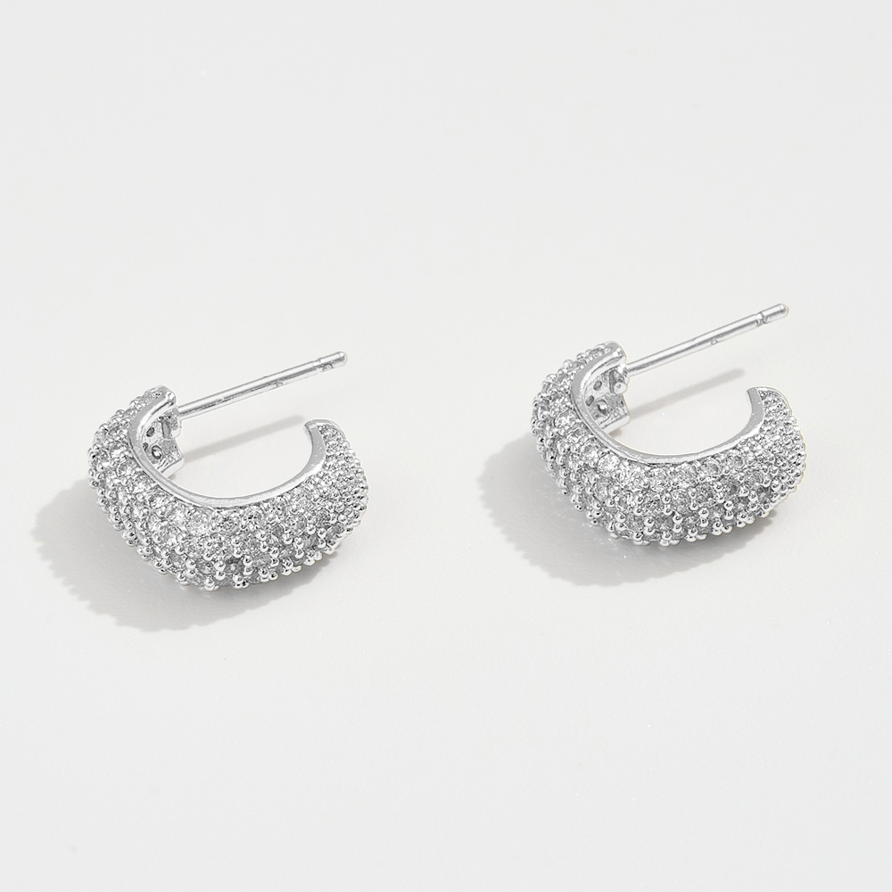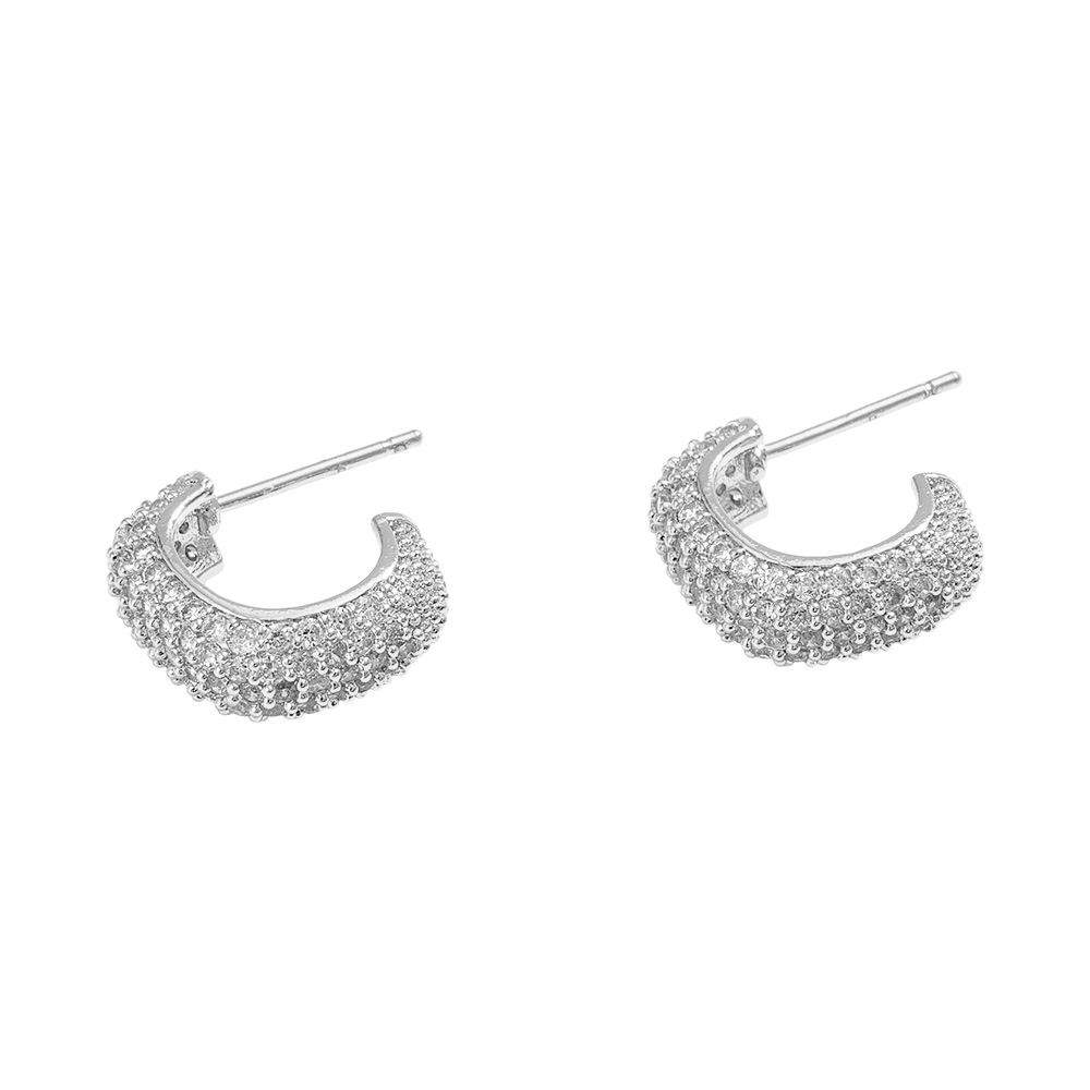 • These pavĂ© dome hoop earrings sparkle with rows of CZ stones, creating a bold yet refined statement. The rounded silhouette enhances their brilliance, making them an essential accessory to elevate both everyday wear and sophisticated evening outfits.