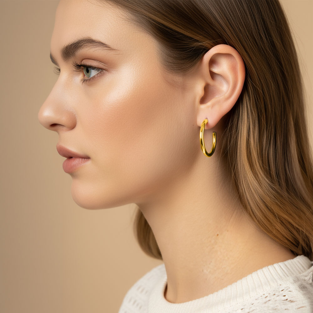 • Timeless medium hoop earrings designed with a smooth and modern finish. Lightweight and comfortable, they bring effortless style for daily wear or special occasions, making them a versatile jewelry essential for any wardrobe.