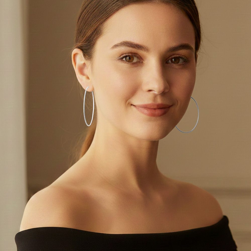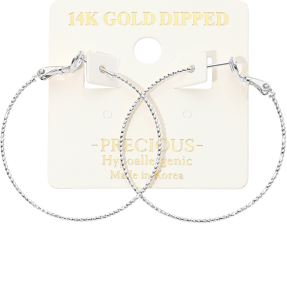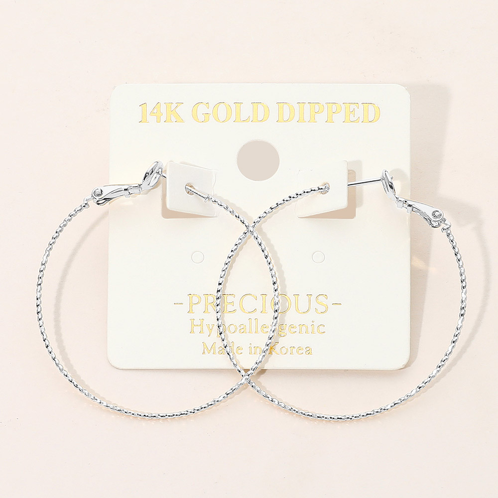 • Lightweight hoop earrings featuring a thin, textured surface for a stylish statement. Designed for comfort and elegance, these hoops are perfect for daily wear or special events. An easy match for casual and dressy looks alike.