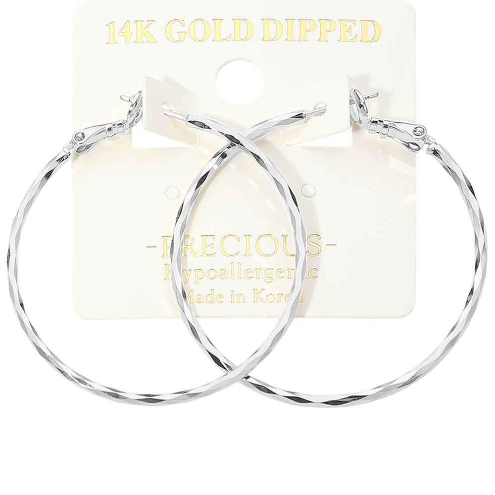 • These classic twisted hoop earrings feature a refined faceted design that adds subtle texture and shine. Designed with a secure latch closure for easy wear and a dependable fit, they are ideal for everyday styling or special occasions, offering timeless appeal, comfort, and versatile elegance.
