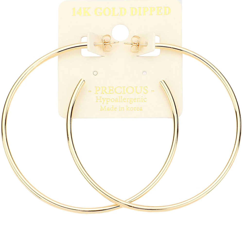 Chunky Metal 2.4 Inch Hoop Pin Catch Earrings