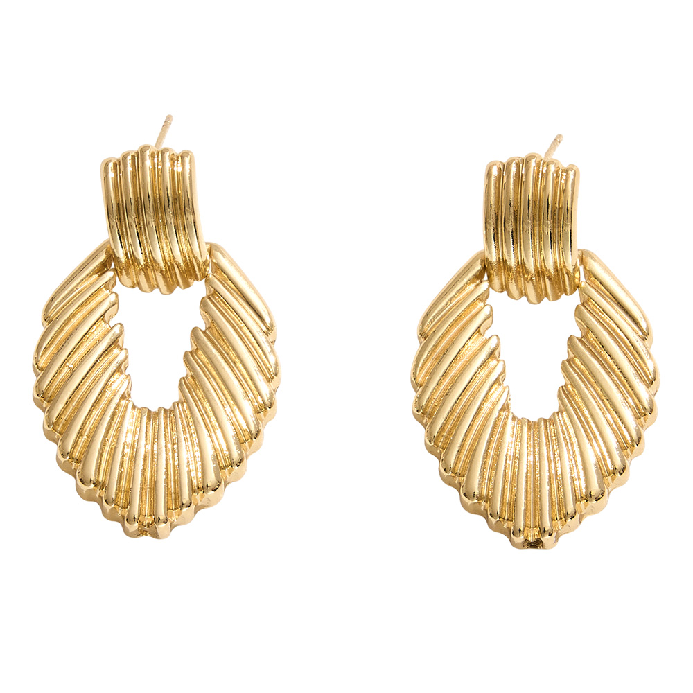 14K Gold Dipped Ribbed Teardrop Door Knocker Earrings